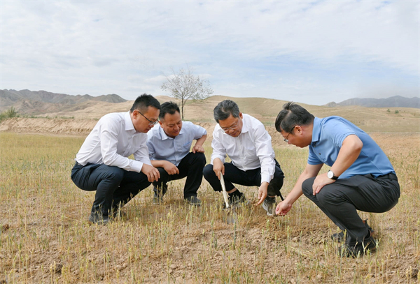 省委副书记、省长任振鹤8月19日在兰州市永登县调研抗旱减灾工作。他强调,要深入学习贯彻8月17日中央政治局常委会会议精神,深刻认识当前旱情的严峻性和做好抗旱减灾工作的紧迫性,立足保障国家粮食安全、巩固拓展脱贫攻坚成果、稳住农业快速发展势头,全力做好抗旱减灾各项工作,最大限度降低旱情损失,确保城乡居民饮水安全,确保农业生产安全,齐心协力、多措并举打赢防旱抗旱这场硬仗。
