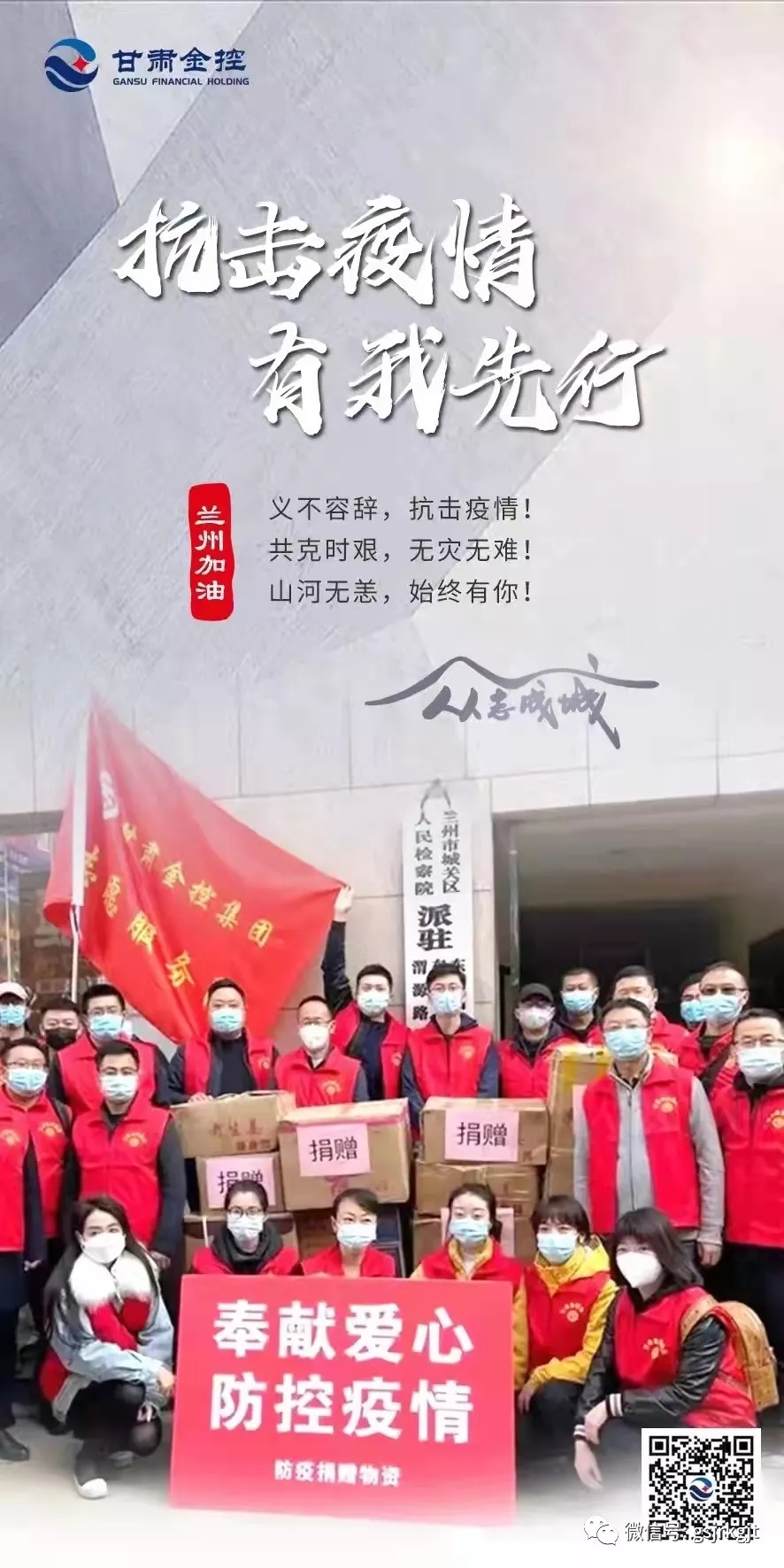 十月的金城,还没来得及走出国庆的喜悦,突袭而至的“德尔塔”病毒让整个城市按下了“暂停键”,车水马龙的兰州市显得格外静寂,美丽的黄河之滨也略失姿色,唯有满城鲜红的党旗给人以信念,白衣铠甲的逆行者给人以信心,“兰州加油、抗疫必胜”的强音不断响彻金城大地。十月“抗疫之战”打响以来,全省各行各业主动扛起责任,医护人员昼夜奋战、公安民警奋勇当先,国企勇挑重担,民企积极出力,科研人员奋力攻关,党员干部投身志愿一线,全城的每一个人都在竭尽全力为抗疫贡献自己的一份力量,共同描绘着一幅同舟共济的抗疫画卷。陇原融资租赁公司就是这其中的一支队伍,在AK官方网站_AK(中国)