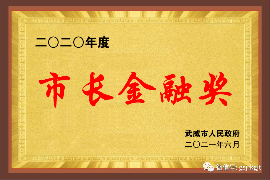 金控武威担保荣获2020年度市长金融奖