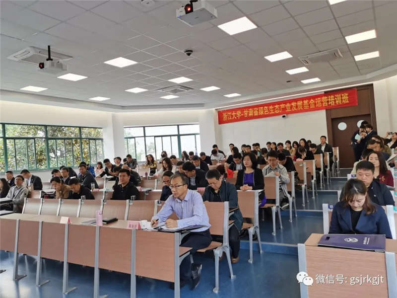 10月18--24日,按照甘肃省绿色生态产业发展基金工作协调领导小组办公室统筹安排,“甘肃省绿色生态产业发展基金运营培训班”如期在浙江大学开班,浙江大学社会学系副教授、社会学系系主任助理陈宗仕,甘肃省绿色生态产业发展基金工作协调领导小组副组长单位甘肃金融监管局金融三处处长潘秀,甘肃国投党委委员、副总经理王文秀出席开班仪式并讲话。省财政厅、省发改委、省工信厅、省商务厅、省卫健委、省文旅厅6个牵头部门,省金融监管局、省公共资源交易局、省市场监督管理局、甘肃股交中心4个成员单位,清洁生产子基金、节能环保子基金、军民融合子基金3支子基金管理人,中信银行兰州分行,兰州市、酒泉市、庆阳市、甘南州、天水市、定西市、金昌市、武威市、白银市、张掖市、平凉市11个市州财政局、工信局、金融办,省国投、甘肃科投、酒钢集团、丝绸之路信息港、兰州金控、兰州新区金控、中审亚太会计师事务所7家企业相关领导共计87人参加此次培训。