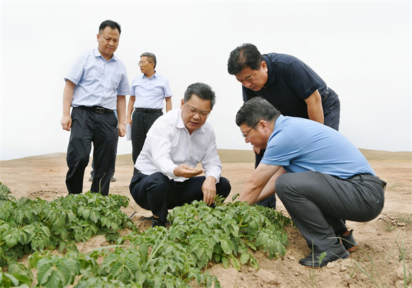 省委副书记、省长任振鹤8月19日在兰州市永登县调研抗旱减灾工作。他强调,要深入学习贯彻8月17日中央政治局常委会会议精神,深刻认识当前旱情的严峻性和做好抗旱减灾工作的紧迫性,立足保障国家粮食安全、巩固拓展脱贫攻坚成果、稳住农业快速发展势头,全力做好抗旱减灾各项工作,最大限度降低旱情损失,确保城乡居民饮水安全,确保农业生产安全,齐心协力、多措并举打赢防旱抗旱这场硬仗。