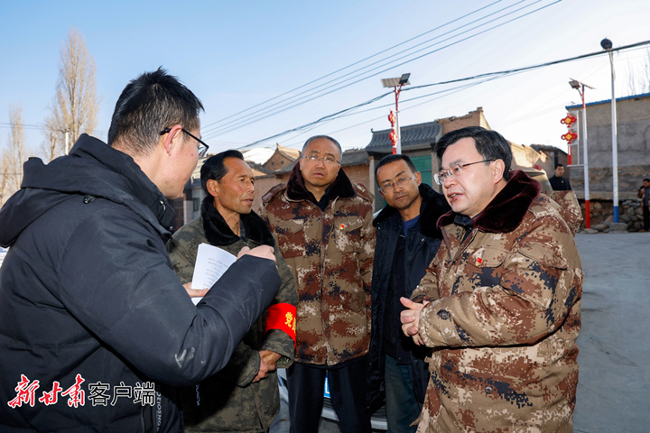 12月28日,省委书记胡昌升在积石山县检查指导板房搭建和受灾群众安置等工作。(记者孟捷)